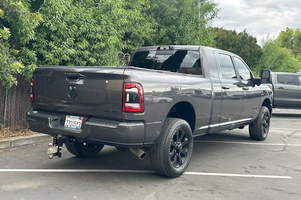 Step inside this remarkable truck, and you'll be greeted by a cabin that redefines luxury and comfort. The Laramie trim level offers an array of premium features, including the stunning 12" touchscreen display, Alexa Built-In, and a state-of-the-art Surround View Camera System. Sink into the plush, heated leather-trimmed seats and enjoy the convenience of the power-adjustable pedals with memory function.